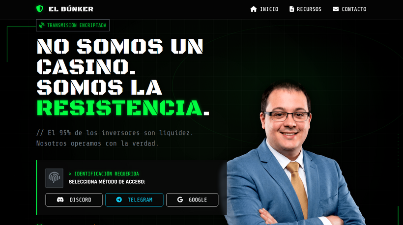 Si intentas abrir la web desde el navegador interno de la App de Telegram, a veces falla. SOLUCIÓN: Abre el enlace directamente en tu navegador (Chrome, Firefox, Safari, Brave): https://elbunkerbitcoin.com